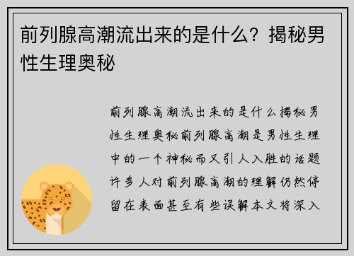 前列腺高潮流出来的是什么?揭秘男性生理奥秘