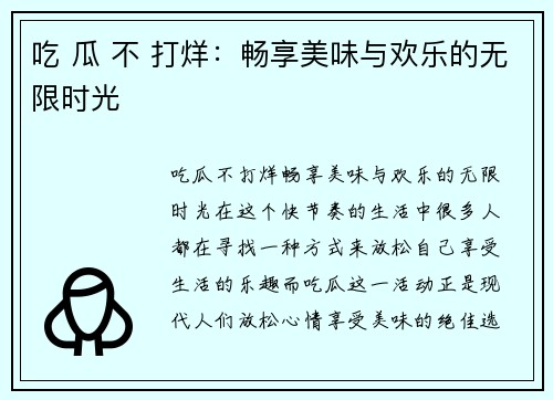 吃 瓜 不 打烊:畅享美味与欢乐的无限时光
